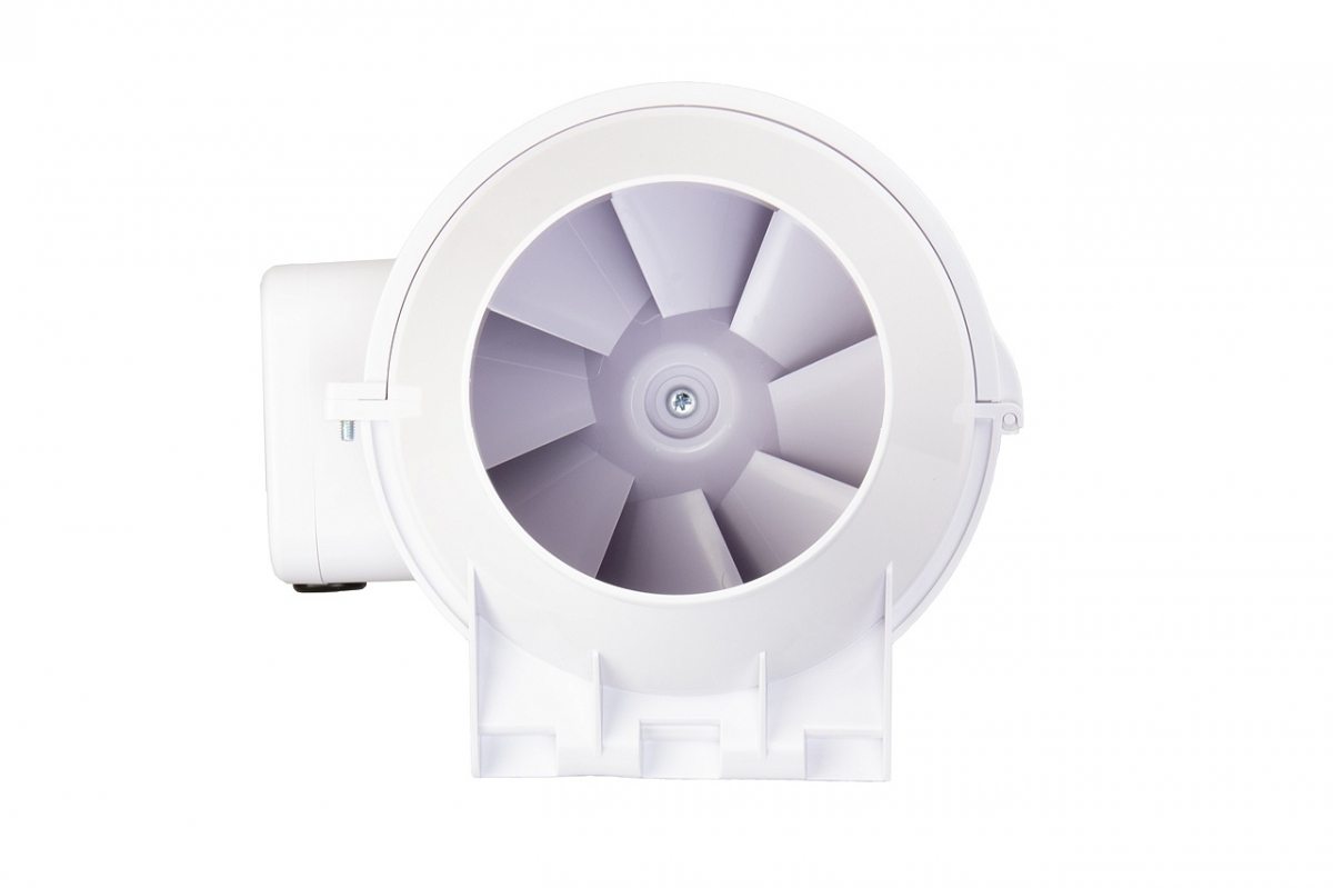 Рабочее колесо смешанного типа с диагональными лопатками, изготовлено из АБС пластика, сочетает в себе высокую производительность осевых вентиляторов и высокое давление центробежных. Лопасти выпрямителя корпуса, являясь частью рабочего колеса, сглаживают поток воздуха во избежание проблем с нисходящими потоками